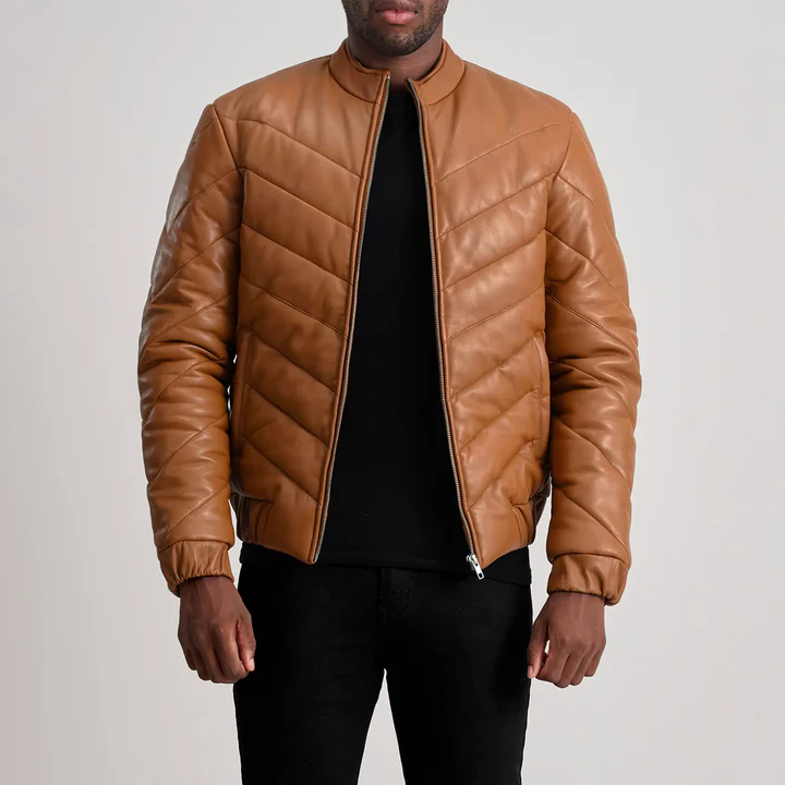 The interior of the Brown Leather Jacket – Puffer Style features a polyester lining that ensures comfortable wear during the cold winter months. The zipper closure ensures that the Brown Leather Jacket – Puffer Style fits well, while the leather rib cuffs provide flexibility to the wearer. Designed to provide the wearer with the benefits of an outerwear jacket, the Brown Leather Jacket – Puffer Style features two exterior pockets and two interior pockets.